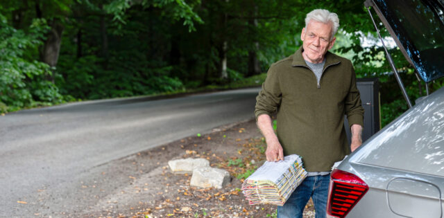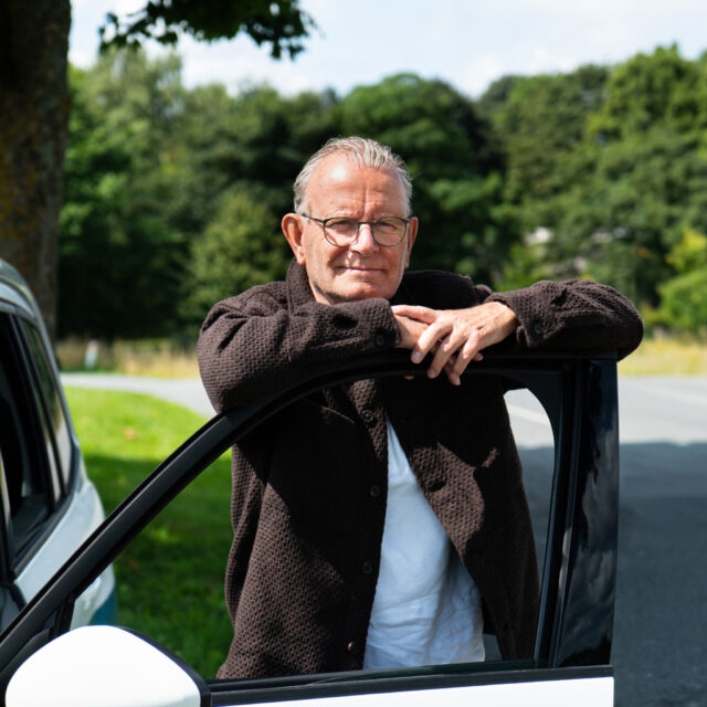 På vores landruter er der ofte længere afstand mellem husene – derfor er bil nødvendig for at kunne gennemføre omdelingen.